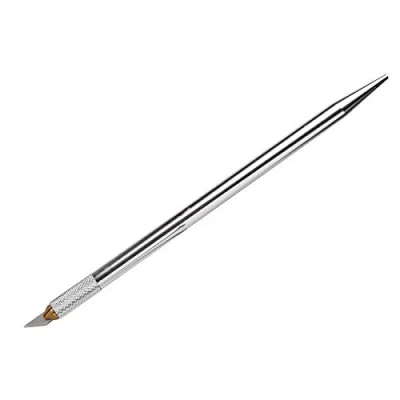 Double ended with precision knife & fine point scriber Micro blade perfect for intricate cutting and trimming Scriber end for marking wood, metal, plastic, laminates & more Includes 2 spare micro blades