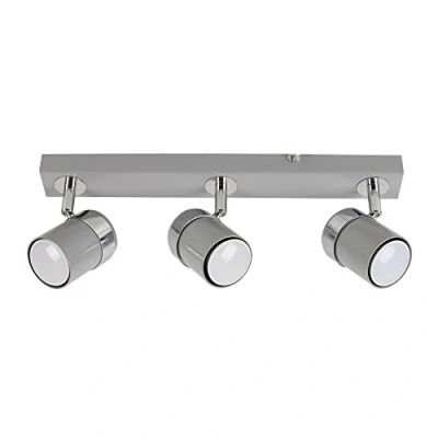 Modern 3 Way Ceiling Spotlight Bar Fitting in a Gloss Grey and Silver Chrome Finish Adjustable Spotlight Heads - Aim The Light Where You Need It - Ideal For Dining Areas, Kitchens and Hallways Measurements: Height 130mm x Width 380mm x Depth 60mm 3 x 50w GU10 Bulbs are Required - Not Supplied Reference Number: 22246