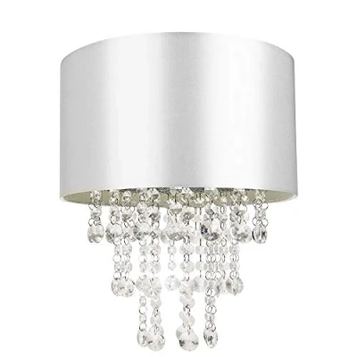 Contemporary and stylish non-electrical easy fit pendant light shade. Simply attaches to your existing pendant rose. High quality grey satin fabric material shade with hanging clear acrylic droplets which give off an eye-catching crystal effect when light shines through. The product dimensions are: Height - 17cm, Width - 30cm, Depth - 30cm. Maximum wattage allowed is 60w. Please note that ceiling rose and cable is not included - pendant shade only being sold. Complete with shade reducer ring allowing for most lamp bases - B22/BC, E14/SES and E27/ES. Light bulb not included., Weight: 1.322773572 pounds, Manufacturer: Happy Homewares