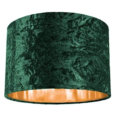 Modern and stylish high quality circular drum lamp shade which is currently very on-trend. Works well in any room of the house as well as commercial such as bars, restaurants, cafes and hotels etc. Made of high quality forest green crushed velvet fabric with unique shiny copper paper inner creating a stunning effect when the light bulb is switched on. The product dimensions are: Height - 20cm, Top diameter - 30cm, Bottom diameter - 30cm. Maximum wattage allowed is 60w. Features a reversible gimbal allowing usage for both table lamps and pendant ceiling roses. Please note that only shade is included. Complete with shade reducer ring allowing for most lamp lamp bases - B22/BC, E14/SES and E27/ES. Light bulb not included., Weight: 1.6093745126 pounds, Manufacturer: Happy Homewares