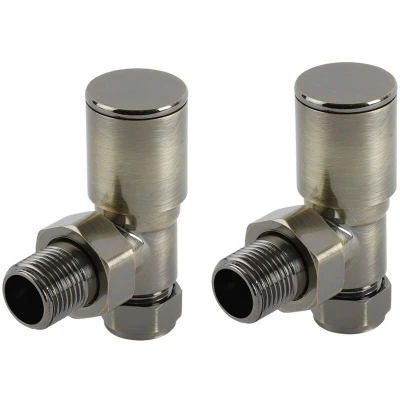 Enhance the contemporary feel of your radiator or heated towel rail with the attractive Milano angled valves. The modern valves are made from premium quality solid brass and accentuated by a stunning dark brushed brass finish. With 1/2" threaded connections the valves are designed for use with industry standard 15mm pipes to ensure that installation is easy. - Modern angled radiator valves with dark brushed brass finish - Solid brass construction for long-lasting durability - Suitable for use with a radiator or heated towel rail - Fitted with 1/2" thread connections - For use with standard 15mm pipes - This product is covered for 5 years Please note: These valves are bi-directional.