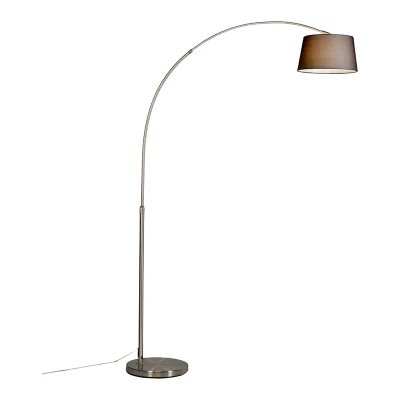 General description The QAZQA Modern Arc Lamp Steel with Black Fabric Lampshade - Arc Basic features a minimalist design with a sturdy steel base and a stylish black fabric lampshade. This arc lamp is perfect for providing both functional and ambient lighting in your living space, making it an ideal addition to your living room or dining area. Technical specifications Total length: 120 cm Height adjustable: Minimum 154.8 cm, Maximum 170 cm Base diameter: 30 cm Bulb holder: E27 Maximum wattage: 1 x 20 W Voltage: 220V/230V Protection class: IP20 Dimmable: Yes, with external dimmer (not included) Suitable for: Incandescent, Halogen, LED, Energy saving bulbs Usage This lamp is designed to create a cozy atmosphere in your home. It is suitable for indoor use, particularly in living rooms and dining areas. To complete your arc lamp, simply add a light source with an E27 fitting (max. 20W). Other information