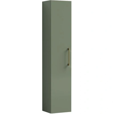 Modern Bathroom Wall Hung 1 Door Tall Storage Unit Satin Green with Brushed Brass Handle, 1433 x 300 235mm