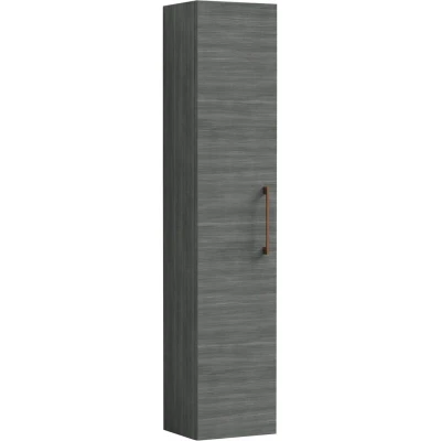 Modern Bathroom Wall Hung 1 Door Tall Storage Unit Woodgrain Anthracite with Copper Finish Handle, 1433 x 300 235mm
