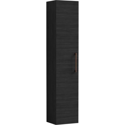 Balterley Level Modern Bathroom 1 Soft Close Door Wall Hung Tall Storage Unit, Woodgrain Black with Copper Handle, 300 mm Upgrade your bathroom with the Balterley Level 300 mm wall-hung tall unit, designed to save space while keeping towels and toiletries neatly stored. Its black finish and copper handle add a bold, stylish touch while making cleaning effortless. The Balterley Level 300 mm wall-hung tall unit offers compact vertical storage for small bathrooms and en-suites. Wall-mounted design keeps floors clear and makes cleaning underneath quick and easy. Product Highlights: Charcoal Black Finish: Deep black woodgrain panels add a bold, modern look while hiding fingerprints and smudges, keeping your bathroom sleek, stylish, and low-maintenance. Wall-Hung Design: Floating off the floor saves space, allows flexible mounting height, and makes cleaning underneath quick and simple while creating a lighter, open bathroom feel. Copper Handle: Elegant copper handle adds a warm metallic