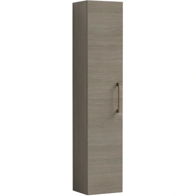 Modern Bathroom Wall Hung 1 Door Tall Storage Unit Woodgrain Mid Oak with Brushed Bronze Handle, 1433 x 300 235mm