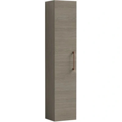 Modern Bathroom Wall Hung 1 Door Tall Storage Unit Woodgrain Mid Oak with Copper Handle, 1433 x 300 235mm