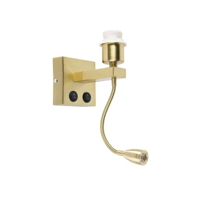 General description The QAZQA Modern Brass Wall Lamp with Flexible Arm - Brescia Combi is a stylish and functional lighting solution. This modern gold wall lamp can be easily paired with a striking or simple lampshade, allowing you to customize your decor. The lamp features an integrated 2V LED module with a flexible arm, enabling you to adjust the light direction as needed. Technical specifications Integrated LED module: 2V Color temperature: 3000 Kelvin Brightness: 120 lumens Bulb holder: E27 Maximum wattage: 1 x 1 W Connecting voltage: 220V/230V Protection class: IP20 Non-dimmable Dimensions: Depth 20 cm, Height 33 cm Adjustable arm length: 23 cm Mounting plate dimensions: Length 10 cm, Width 10 cm Compatibility and accessories Compatible with E27 light sources up to 60 watts (not included) Installation Easy to install with on/off buttons on the mounting plate Usage Suitable for indoor use in spaces such as bedrooms and living rooms Other information