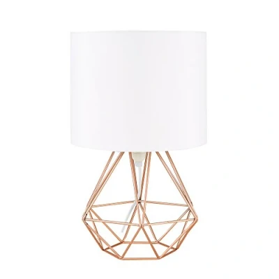 Modern Copper Metal Basket Cage Bed Side Table Lamp with a White Fabric Shade