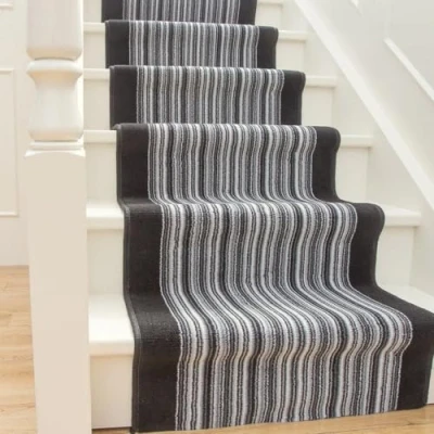 Design: A bold vertical linier design in a deep black and grey colour palette. Available in 60cm, 70cm and 80cm widths How to Measure your Stairs: Measure the DEPTH of the Stair TREAD (standard depth is 9in). Measure the Height of the RISER (standard height is 7in). ADD these two measurements together (9+7) and multiply by the number of stairs you require carpet for. (E.G 13 steps x 16in = 208 inches plus add 9 inches for the top riser. 217 inches = 18ft). Please Note: The above information is merely a guide and may not apply to all staircases. Stair Carpet CANNOT be RETURNED - It is recommended that you measure your space before purchasing.