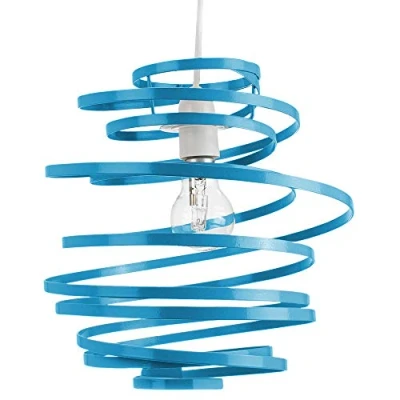 Contemporary and unique non electrical pendant light shade. Simply attaches to your existing pendant rose. High quality vibrant teal gloss metal double ribbon spiral swirl design creating a very unique and trendy look. The product dimensions are: Height - 35cm, Width - 22cm, Depth - 23cm. Maximum wattage allowed is 60w. Please note that ceiling rose and cable is not included - pendant shade only being sold. Complete with shade reducer ring allowing for most lamp bases - B22/BC, E14/SES and E27/ES. Light bulb not included., Weight: 1.4550509292 Pounds, Manufacturer: Happy Homewares