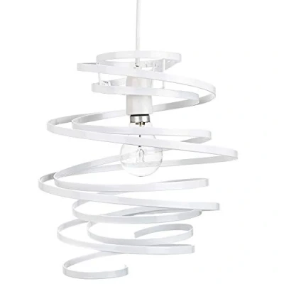 Contemporary and unique non electrical pendant light shade. Simply attaches to your existing pendant rose. High quality white gloss metal double ribbon spiral swirl design creating a very unique and trendy look. The product dimensions are: Height - 35cm, Width - 22cm, Depth - 23cm. Maximum wattage allowed is 60w. Please note that ceiling rose and cable is not included - pendant shade only being sold. Complete with shade reducer ring allowing for most lamp bases - B22/BC, E14/SES and E27/ES. Light bulb not included., Weight: 1.984160358 pounds, Manufacturer: Happy Homewares
