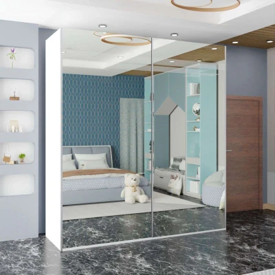 Sliding Wardrobes 4U Modern Full Mirror Sliding Door Wardrobe – 150cm 200cm 250cm Elegant. Practical. Space-saving. This modern full-mirror sliding wardrobe combines a sleek contemporary look with generous, flexible storage. Smooth, silent sliding doors with full-length mirrors brighten the room while saving floor space — perfect for modern bedrooms and compact living areas. Each model now includes integrated top LED lighting to add ambience and enhance the mirrored reflection. Key features Full rectangular mirrored doors — reflect light and visually enlarge the room. Built-in LED lighting — top-mounted LEDs illuminate your wardrobe interior and create a luxurious modern ambience (1 LED light for 150cm & 200cm, 3 LED lights for 250cm). Space-saving sliding design — smooth, precision-engineered rails for quiet, effortless operation. Durable construction — high-quality MDF chipboard with a laminated matt finish for longevity and easy cleaning. Flexible internal layout — tailored storage