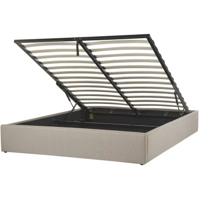 Modern Fabric eu King Size Bed Frame 5ft3 Linen Storage Light Brown Dinan