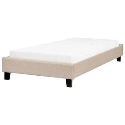 Minimalistic Upholstered Linen Bed Frame. Enjoy a peaceful night's sleep with this minimalistic bed frame. Its modern, universal design complements any interior décor. Upholstered in high-quality linen-look polyester, the frame features wooden slats ensuring even bodyweight distribution. Without a headboard, this bed is ideal for rooms with low, slanted ceilings. Details: Product Type: Single Bed Style: Traditional General Color: Beige, Brown Material Type: Fabric Main Material: Fabric Additional Material: Plywood Material Composition: 100% Polyester Fabric Upholstered Back: No Dimensions: Width: 99 cm Length: 211 cm Height: 29 cm Sleeping Surface: 90x200 cm Weight: 16 kg Weight Capacity: 300 kg Offer Includes: 1 x Bed Frame, 1 x Slatted Frame (13 Sprung Slats), Not Included: Mattress, Bedding and Cushions Key Features: Suitable for All Types of Mattresses, Shock-absorbing Slatted Bed Base Offers Perfect Support, Minimalistic, Scandinavian Style, High-Quality Upholstery, Sturdy Frame