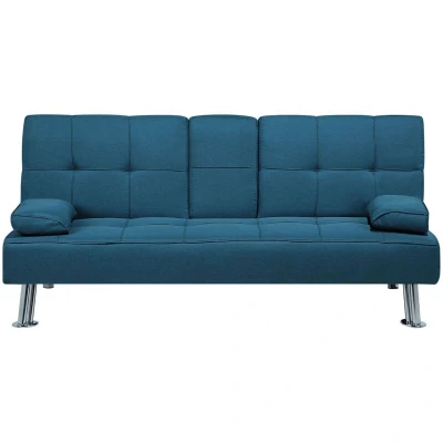 Modern Fabric Sofa Bed Click clack Convertible Drop down Table Blue Roxen