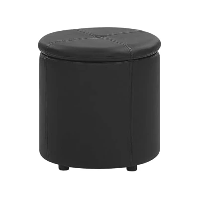 AmazonDecorative accent pouffe in minimalist design, ideal complementary piece for glamour living room or bedroom Upholstered with durable and elegant faux leather A decorative button on the top catches an eye Offers a hidden storage space perfect for blankets or throws Requires quick assembly, only legs to be fitted