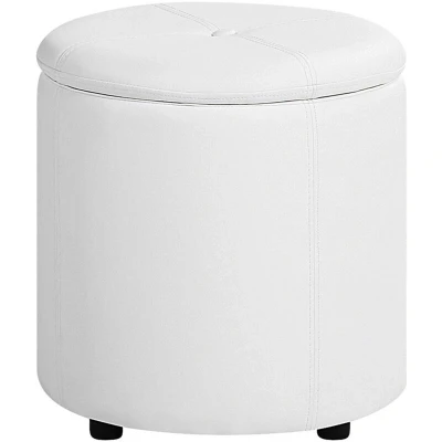 Modern Faux Leather Round Pouffe Stool White Living Room Bedroom Maryland