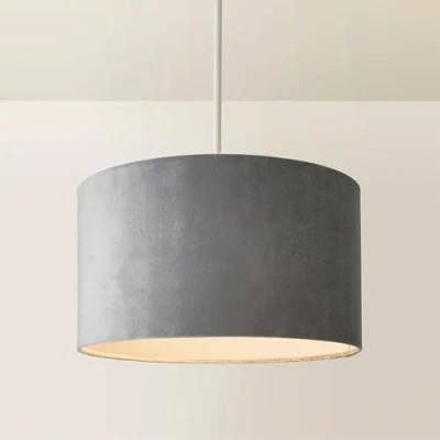 Modern Grey Velvet Cylinder Ceiling Pendant Lampshade/Table Lamp Drum Light Shade Medium