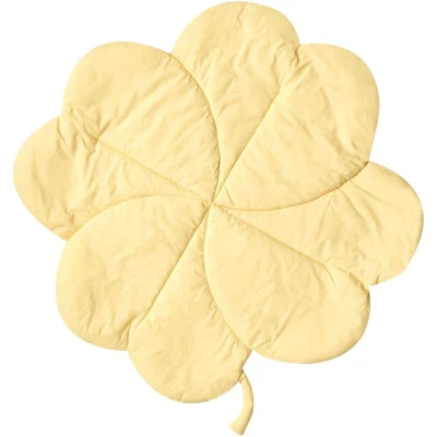 Modern Kids Playmat Clover Shaped Quilted Cotton Cover 110 x cm Nursery Accessory Yellow Acadine