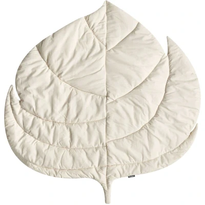 Modern Kids Playmat Leaf Shaped Quilted Cotton Cover 110 x cm Nursery Accessory Off White Olimp