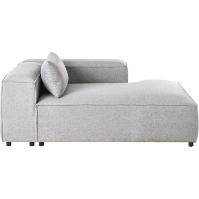 General description This left-hand chaise lounge module enhances the functionality and comfort of your modular seating setup. Upholstered in grey fabric, it offers a refined appearance while being easy to maintain. The spacious foam-filled surface provides excellent support whether you're lounging, stretching out, or hosting guests. It works great as a standalone chaise or as an extension to create an L-shaped sectional. Designed to integrate smoothly into a modular arrangement, it remains stable yet easy to reposition, giving you the freedom to adjust your layout as needed. Technical specifications Product Type: Module Element Style: Modern General Color: Grey Material Type: Fabric Main Material: Fabric Additional Material: Plywood Filling Material: Foam Material Composition: 100% Polyester Arm Style: Track Orientation: Left Hand Pattern: Solid Reclining: No Seat Construction: Elastic Belt Seat Foam Density: 28 kg/m3 Dimensions: Armrests Height: 70 cm, Depth: 184 cm, Seat Thickness: