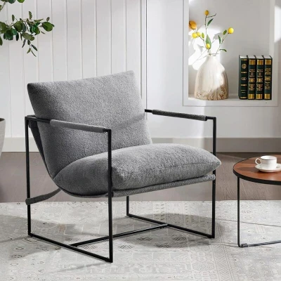 Modern Lounge Chair Accent with Metal Frame and 4inch thick Boucle Fabric Ergonomic Cushions LUCA GREY
