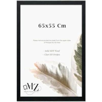 Modern Mdf Wooden Wide Black Frame | 65x55 Cm Poster Frames Durable Sleek Acrylic Front | Jigsaw Puzzle Picture Frames Large Art Display For Home & Office Décor Versatile Display Options: Whether you prefer to hang your posters on the wall or display them on a tabletop,or you want to hang portrait or landscape our frames offer versatile display options to suit your preferences. Material: Made with pure Mdf wood and shatter-proof Styrene Acrylic Perspex Front With integrated mounting hardware, hanging your frames is quick and hassle-free, for effortless wall and tabletop display. Multiple Uses: Our 65x55 cm Poster frames are perfect to display you certificate and achievement. You can also make a collage wall with these frames, also display your art prints posters in your kitchen wall living rooms bedrooms offices school and more. Protective Acrylic Cover: Each frame comes with a protective acrylic cover that shields your posters from dust, moisture, and damage.