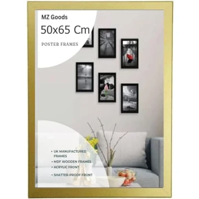 Modern Mdf Wooden Wide Gold Frame | 50x65 Cm Poster Frames Durable Sleek Acrylic Front | Jigsaw Puzzle Picture Frames Large Art Display For Home & Office Décor Versatile Display Options: Whether you prefer to hang your posters on the wall or display them on a tabletop,or you want to hang portrait or landscape our frames offer versatile display options to suit your preferences. Material: Made with pure Mdf wood and shatter-proof Styrene Acrylic Perspex Front With integrated mounting hardware, hanging your frames is quick and hassle-free, for effortless wall and tabletop display. Multiple Uses: Our 50x65 cm Poster frames are perfect to display you certificate and achievement. You can also make a collage wall with these frames, also display your art prints posters in your kitchen wall living rooms bedrooms offices school and more. Protective Acrylic Cover: Each frame comes with a protective acrylic cover that shields your posters from dust, moisture, and damage.