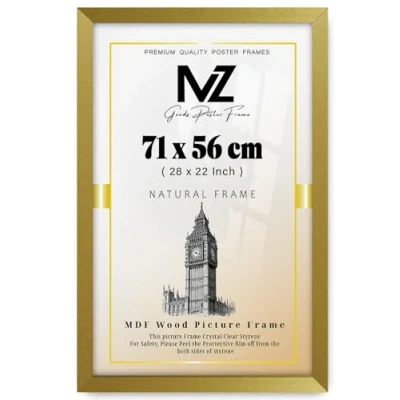 Modern Mdf Wooden Wide Gold Frame | 56x71 CmPoster Frames Durable Sleek Acrylic Front | Jigsaw Puzzle Picture Frames Large Art Display For Home & Office Décor Versatile Display Options: Whether you prefer to hang your posters on the wall or display them on a tabletop,or you want to hang portrait or landscape our frames offer versatile display options to suit your preferences. Material: Made with pure Mdf wood and shatter-proof Styrene Acrylic Perspex Front With integrated mounting hardware, hanging your frames is quick and hassle-free, for effortless wall and tabletop display. Multiple Uses: Our 56x71 cm Poster frames are perfect to display you certificate and achievement. You can also make a collage wall with these frames, also display your art prints posters in your kitchen wall living rooms bedrooms offices school and more. Protective Acrylic Cover: Each frame comes with a protective acrylic cover that shields your posters from dust, moisture, and damage.