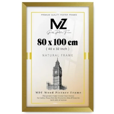Modern Mdf Wooden Wide Gold Frame | 80x100 Cm Poster Frames Durable Sleek Acrylic Front | Jigsaw Puzzle Picture Frames Large Art Display For Home & Office Décor Versatile Display Options: Whether you prefer to hang your posters on the wall or display them on a tabletop,or you want to hang portrait or landscape our frames offer versatile display options to suit your preferences. Material: Made with pure Mdf wood and shatter-proof Styrene Acrylic Perspex Front With integrated mounting hardware, hanging your frames is quick and hassle-free, for effortless wall and tabletop display. Multiple Uses: Our 80x100 cm Poster frames are perfect to display you certificate and achievement. You can also make a collage wall with these frames, also display your art prints posters in your kitchen wall living rooms bedrooms offices school and more. Protective Acrylic Cover: Each frame comes with a protective acrylic cover that shields your posters from dust, moisture, and damage.