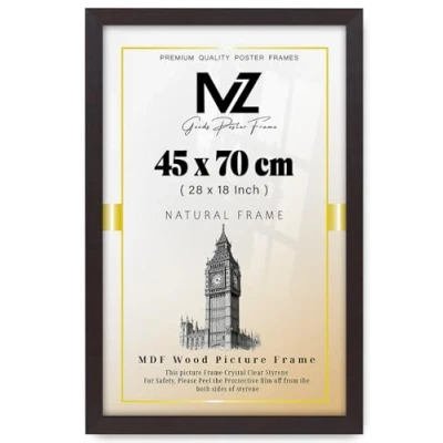 Modern Mdf Wooden Wide Mahogony Frame | 45x70 Cm Poster Frames Durable Sleek Acrylic Front | Jigsaw Puzzle Picture Frames Large Art Display For Home & Office Décor Versatile Display Options: Whether you prefer to hang your posters on the wall or display them on a tabletop,or you want to hang portrait or landscape our frames offer versatile display options to suit your preferences. Material: Made with pure Mdf wood and shatter-proof Styrene Acrylic Perspex Front With integrated mounting hardware, hanging your frames is quick and hassle-free, for effortless wall and tabletop display. Multiple Uses: Our 45x70 cm Poster frames are perfect to display you certificate and achievement. You can also make a collage wall with these frames, also display your art prints posters in your kitchen wall living rooms bedrooms offices school and more. Protective Acrylic Cover: Each frame comes with a protective acrylic cover that shields your posters from dust, moisture, and damage.