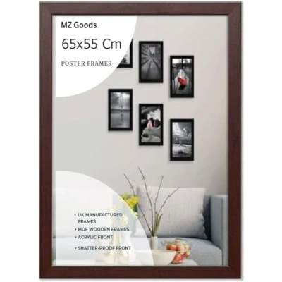 Modern Mdf Wooden Wide Mahogony Frame | 65x55 Cm Poster Frames Durable Sleek Acrylic Front | Jigsaw Puzzle Picture Frames Large Art Display For Home & Office Décor Versatile Display Options: Whether you prefer to hang your posters on the wall or display them on a tabletop,or you want to hang portrait or landscape our frames offer versatile display options to suit your preferences. Material: Made with pure Mdf wood and shatter-proof Styrene Acrylic Perspex Front With integrated mounting hardware, hanging your frames is quick and hassle-free, for effortless wall and tabletop display. Multiple Uses: Our 65x55 cm Poster frames are perfect to display you certificate and achievement. You can also make a collage wall with these frames, also display your art prints posters in your kitchen wall living rooms bedrooms offices school and more. Protective Acrylic Cover: Each frame comes with a protective acrylic cover that shields your posters from dust, moisture, and damage.