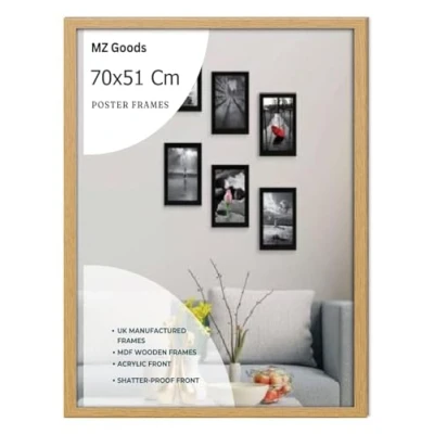 Modern Mdf Wooden Wide Oak Frame | 70x51Cm Poster Frames Durable Sleek Acrylic Front | Jigsaw Puzzle Picture Frames Large Art Display For Home & Office Décor Versatile Display Options: Whether you prefer to hang your posters on the wall or display them on a tabletop,or you want to hang portrait or landscape our frames offer versatile display options to suit your preferences. Material: Made with pure Mdf wood and shatter-proof Styrene Acrylic Perspex Front With integrated mounting hardware, hanging your frames is quick and hassle-free, for effortless wall and tabletop display. Multiple Uses: Our 70x51 cm Poster frames are perfect to display you certificate and achievement. You can also make a collage wall with these frames, also display your art prints posters in your kitchen wall living rooms bedrooms offices school and more. Protective Acrylic Cover: Each frame comes with a protective acrylic cover that shields your posters from dust, moisture, and damage.