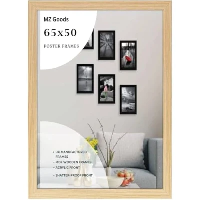 Modern Mdf Wooden Wide Pine Frame | 50x65 Cm Poster Frames Durable Sleek Acrylic Front | Jigsaw Puzzle Picture Frames Large Art Display For Home & Office Décor Versatile Display Options: Whether you prefer to hang your posters on the wall or display them on a tabletop,or you want to hang portrait or landscape our frames offer versatile display options to suit your preferences. Material: Made with pure Mdf wood and shatter-proof Styrene Acrylic Perspex Front With integrated mounting hardware, hanging your frames is quick and hassle-free, for effortless wall and tabletop display. Multiple Uses: Our 65x50 cm Poster frames are perfect to display you certificate and achievement. You can also make a collage wall with these frames, also display your art prints posters in your kitchen wall living rooms bedrooms offices school and more. Protective Acrylic Cover: Each frame comes with a protective acrylic cover that shields your posters from dust, moisture, and damage.