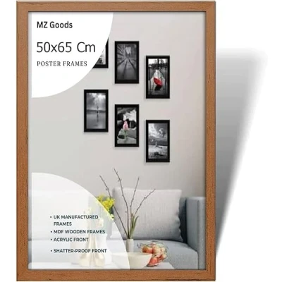 Modern Mdf Wooden Wide Walnut Frame | 50x65 Cm Poster Frames Durable Sleek Acrylic Front | Jigsaw Puzzle Picture Frames Large Art Display For Home & Office Décor Versatile Display Options: Whether you prefer to hang your posters on the wall or display them on a tabletop,or you want to hang portrait or landscape our frames offer versatile display options to suit your preferences. Material: Made with pure Mdf wood and shatter-proof Styrene Acrylic Perspex Front With integrated mounting hardware, hanging your frames is quick and hassle-free, for effortless wall and tabletop display. Multiple Uses: Our 65x50 cm Poster frames are perfect to display you certificate and achievement. You can also make a collage wall with these frames, also display your art prints posters in your kitchen wall living rooms bedrooms offices school and more. Protective Acrylic Cover: Each frame comes with a protective acrylic cover that shields your posters from dust, moisture, and damage.