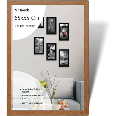 Modern Mdf Wooden Wide Walnut Frame | 65x55 Cm Poster Frames Durable Sleek Acrylic Front | Jigsaw Puzzle Picture Frames Large Art Display For Home & Office Décor Versatile Display Options: Whether you prefer to hang your posters on the wall or display them on a tabletop,or you want to hang portrait or landscape our frames offer versatile display options to suit your preferences. Material: Made with pure Mdf wood and shatter-proof Styrene Acrylic Perspex Front With integrated mounting hardware, hanging your frames is quick and hassle-free, for effortless wall and tabletop display. Multiple Uses: Our 65x55 cm Poster frames are perfect to display you certificate and achievement. You can also make a collage wall with these frames, also display your art prints posters in your kitchen wall living rooms bedrooms offices school and more. Protective Acrylic Cover: Each frame comes with a protective acrylic cover that shields your posters from dust, moisture, and damage.