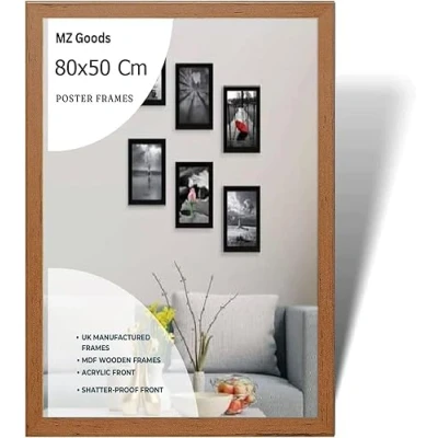 Modern Mdf Wooden Wide Walnut Frame | 80x50 Cm Poster Frames Durable Sleek Acrylic Front | Jigsaw Puzzle Picture Frames Large Art Display For Home & Office Décor Versatile Display Options: Whether you prefer to hang your posters on the wall or display them on a tabletop,or you want to hang portrait or landscape our frames offer versatile display options to suit your preferences. Material: Made with pure Mdf wood and shatter-proof Styrene Acrylic Perspex Front With integrated mounting hardware, hanging your frames is quick and hassle-free, for effortless wall and tabletop display. Multiple Uses: Our 80x50 cm Poster frames are perfect to display you certificate and achievement. You can also make a collage wall with these frames, also display your art prints posters in your kitchen wall living rooms bedrooms offices school and more. Protective Acrylic Cover: Each frame comes with a protective acrylic cover that shields your posters from dust, moisture, and damage.