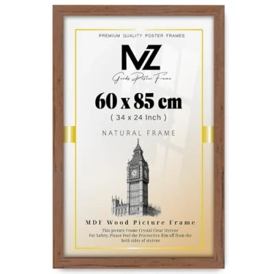 Modern Mdf Wooden Wide Walnut Frame | 85x60 Cm Poster Frames Durable Sleek Acrylic Front | Jigsaw Puzzle Picture Frames Large Art Display For Home & Office Décor Versatile Display Options: Whether you prefer to hang your posters on the wall or display them on a tabletop,or you want to hang portrait or landscape our frames offer versatile display options to suit your preferences. Material: Made with pure Mdf wood and shatter-proof Styrene Acrylic Perspex Front With integrated mounting hardware, hanging your frames is quick and hassle-free, for effortless wall and tabletop display. Multiple Uses: Our 85x60 cm Poster frames are perfect to display you certificate and achievement. You can also make a collage wall with these frames, also display your art prints posters in your kitchen wall living rooms bedrooms offices school and more. Protective Acrylic Cover: Each frame comes with a protective acrylic cover that shields your posters from dust, moisture, and damage.
