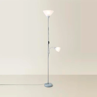 FLOOR LAMP - Update your living space with the latest trends in lighting with this Modern Metallic Silver 2 Way Mother/Father Parent and Child Floor Lamp. Mixing quality materials and stylish designs, our range of products are perfect for adding a modern style to your home. ADJUSTABLE LIGHT HEAD - Perfect for reading, writing and craft and hobbies. This product features a fully adjustable light head that can be rotated, allowing you to direct the light where required. CONTENTS - Bulbs Not Included - 1x MiniSun 10W ES E27 GLS & 1 x MiniSun 4W SES E14 Golfball Bulb are Recommended - Not Supplied. MEASUREMENTS - Width 24.5cm x Height 179cm x Depth 40cm. ABOUT US – At ValueLights, our commitment is as clear today as it was the day we opened our doors back in 2009: to become the go-to people for lighting. As a UK-based team, we design and dispatch our products from our home in the UK, bringing together quality, style and a wide range of lamps, lights, shades and bulbs.