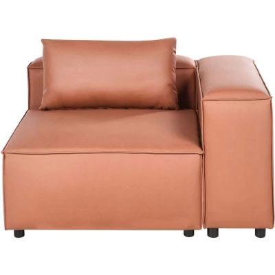 General description This corner seat module is a practical and comfortable addition to any modular sofa arrangement. Upholstered in high-quality faux leather, it features soft foam padding and a wide seat area ideal for lounging. Integrated armrests and back support enhance comfort and provide structure for standalone use or as part of a larger sectional layout. With its clean lines and modern design, the unit seamlessly blends into a variety of living room styles. Whether used to complete a corner or as a compact armchair alternative, it delivers versatile seating and cohesive design. Technical specifications Product Type: Module Element Style: Modern General Color: Brown Shade: Golden Brown Material Type: Faux Leather Main Material: Vegan Eco Leather Additional Material: Plywood Filling Material: Foam Material Composition: 100% Polyester Shape: Rectangular Arm Style: Track Fabric Upholstered Back: Yes Leg Caps/ Pads: No Orientation: Symmetrical Pattern: Solid Seat Construction: