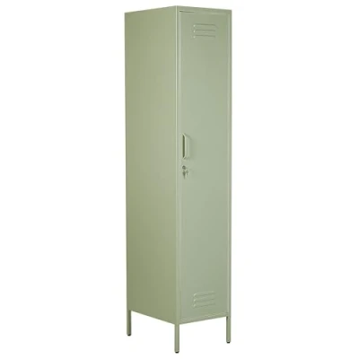 General description A solid cabinet made of steel, the Storage Unit FROME in Light Green is a functional addition to any room, pantry, garage, or home office. Key locked doors guarantee privacy and safe storage of important items or documents. The cabinet features five removable shelves, allowing for larger items or hanging clothes on a rail. Vents ensure constant airflow and prevent bad smells from accumulating inside. Technical specifications Product Type: Wardrobe Style: Modern General Color: Green Shade: Light Green Material Type: Metal Main Material: Steel Legs Material: Metal Number of Shelves: 5 Doors Opening: Standard Drawers: No Finish: E-Coating Key Locked: Yes Number of Doors: 1 Dimensions: Depth: 50 cm, Width: 38 cm, Height: 185 cm Weight: 30 kg Top Weight Capacity: 30 kg Installation Full assembly required Estimated assembly time: 20-40 minutes Usage Ideal for home and office workspace Practical hooks on the door for additional storage Adjustable shelves for versatile