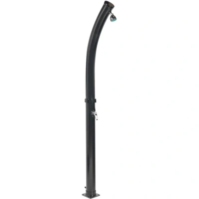 General description Add a touch of elegance to your garden or pool area with this curved solar-powered outdoor shower. Its sleek, arched silhouette is not only eye-catching but also functional, delivering a warm, rainfall-like water stream using solar energy – no electricity required. Built from durable materials and finished in modern black, it blends beautifully into any outdoor setting. Easy to set up and maintain, this stylish shower is perfect for cooling off on hot summer days while embracing sustainable living. Technical specifications Product Type: Outdoor Shower Style: Modern General Color: Black Main Material: PVC Additional Material: Zinc Finish: Gloss Capacity: 20 liters Dimensions: Depth: 16 cm, Width: 16 cm, Height: 217 cm Weight: 6 kg Installation Requires installation with 4 anchoring screws included. Must be mounted to a hard and flat surface (e.g., cement or tile flooring) with access to the water supply system. Installation time: 20-40 minutes. Usage Once the tank