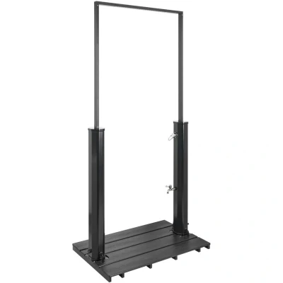 General description This sleek, freestanding outdoor shower is crafted from durable materials, offering both style and longevity. Designed to mimic a natural rainfall, it provides a refreshing and soothing experience in any outdoor space. It also comes with a feet-washing tap, allowing you to clean your feet before entering the pool. With its modern, minimalist design, this shower is the perfect addition to gardens or patios. Easy to install and maintain, it combines functionality with a touch of luxury. Technical specifications Product Type: Outdoor Shower Style: Modern General Color: Black Main Material: PVC Additional Material: Zinc Finish: Gloss Capacity: 40 Dimensions: Depth: 76 cm, Width: 98 cm, Height: 224 cm Weight: 24 kg Installation Requires installation with 4 anchoring screws included. Must be mounted to a hard and flat surface (e.g., cement or tile flooring) with access to the water supply system. Installation time: 60-90 minutes. Follow the manuals and norms of the given