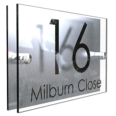 Modern Perspex Steel Aluminium Acrylic House Number Wall Plaque Sign