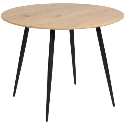 General description Refresh your dining space with the BJORKA Light Brown Round Dining Table, designed to accommodate up to 4 people. This timeless piece, crafted from durable MDF and steel, requires minimal maintenance and is built to last for many years. Its light tabletop and sleek black legs allow it to blend seamlessly with various interior decor styles, from contemporary to retro. Technical specifications Product Type: Dining Table Style: Modern General Color: Brown, Black Main Material: MDF (Engineered Wood) Legs Material: Steel (Metal) Shape: Round Finish: Powder Coated Seats Up To: 4 People Dimensions: Width: 100 cm, Length: 100 cm, Height: 76 cm Weight: 14 kg Weight Capacity: 120 kg Installation Full Assembly Required Estimated Assembly Time: 15 minutes Usage Fits well in a kitchen or dining room Well-suited for a variety of home decor styles For best care, protect against heat and moisture with coasters and placemats Other information To maintain the durability and