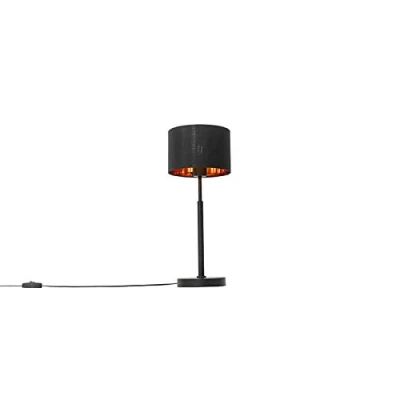 Modern Table Lamp Fabric Lampshade Black with Gold vt 1