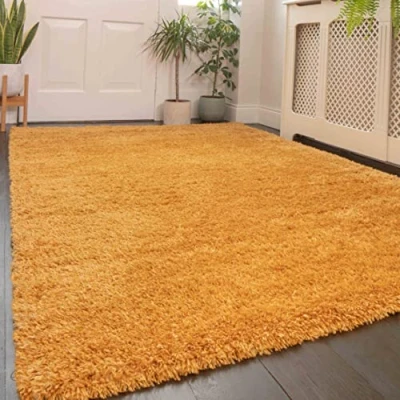 Modern Thick Ochre Mustard Yellow Shaggy Area Rug Durable Super Soft Fluffy Shag Rugs Living Room Lounge Bedroom 121cm x 171cm