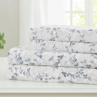 Soft & Breathable Comfort: Crafted from high-quality double-brushed microfiber, this sheet set delivers a soft, smooth feel that enhances your sleep every night. The breathable, lightweight fabric keeps you cool in summer and cozy in winter, making it the perfect year-round bedding essential. Ideal for anyone seeking affordable luxury and hotel-style softness at home. Twin Size Bed Sheets: Features 1 flat sheet measuring 66" x 96", 1 fitted sheet with 14" deep pockets (39" x 75"), and 1 pillowcase (20" x 30"). Designed to fit Twin mattresses snugly for a comfortable, secure fit all night long. Fits Modern Deep Pocket Mattresses: The fitted sheet features deep 14-inch pockets and full-length elastic around the edges to ensure a snug, stay-in-place fit—even on thick mattresses or toppers. These sheets won’t pop off in the middle of the night, offering a smooth, wrinkle-free sleep surface every time. Easy Care & Long-Lasting Color: Built for durability and ease of care, this sheet set is wrinkle-resistant, fade-resistant, and shrink-resistant. Just toss in the washing machine and tumble dry—no ironing required. The colors stay vibrant and the fabric stays smooth, even after repeated washes. The Floral Blue sheet set blends soft florals with cool blue hues to create a peaceful yet expressive pattern that brightens your bed with subtle color.