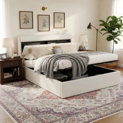 【STYLISH AND MODERN APPEARANCE DESIGN】This double bed features a sleek and contemporary design, perfect for modern bedroom decor. Its stylish appearance adds a touch of fashion to your bedroom, enhancing its overall aesthetic appeal. 【PU MATERIAL IS COMFORTABLE】Crafted from PU material, this ottoman bed provides a soft and comfortable touch for a restful sleep experience. Additionally, PU material is easy to clean and maintain, ensuring long-lasting durability for years to come. 【HYDRAULIC BED FRAME CONVENIENT AND PRACTICAL】With a hydraulic bed frame, lifting the mattress to access the storage space is effortless. This convenient feature allows for easy operation, saving both time and effort while maximizing efficiency. 【MULTIFUNCTIONAL STORAGE SPACE】Equipped with hidden storage space in both the headboard and bed box, this bed frame offers ample room for storing bedding, clothing, and other items. Keep your bedroom organized and clutter-free with this multifunctional storage solution. 【SLAT FRAME PROVIDES GOOD SUPPORT】The slat frame integrated into the bed frame evenly distributes the weight of the mattress, offering excellent support and extending the lifespan of your mattress. Enjoy a well-supported and comfortable sleep every night.